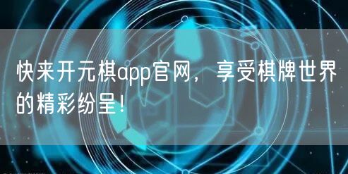 快来开元棋app官网,享受棋牌世界的精彩纷呈!